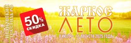 Жаркие скидки с 8-го июля по 11-е августа 2025-го года- скида на все товары нашего магазина составляет 50 процентов!