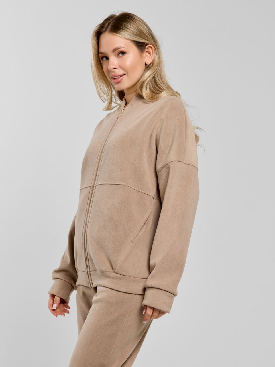 Женский бомбер из даблфлиса «Блик-1 [бежевый]» арт 86072