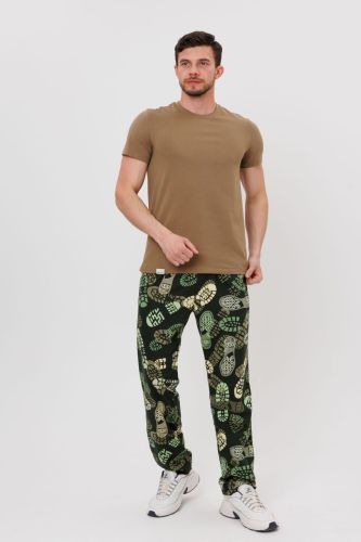 Мужские брюки свободного кроя с карманами в боковых швах. Пояс выполнен из ткацкой резинки с принтом.