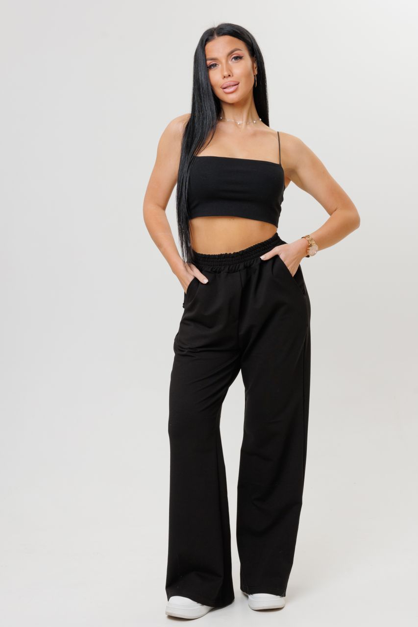 Брюки прямого кроя с карманами, на мягкой эластичной резинке, которая не передавливает кожу и обеспечивает комфортную посадку.