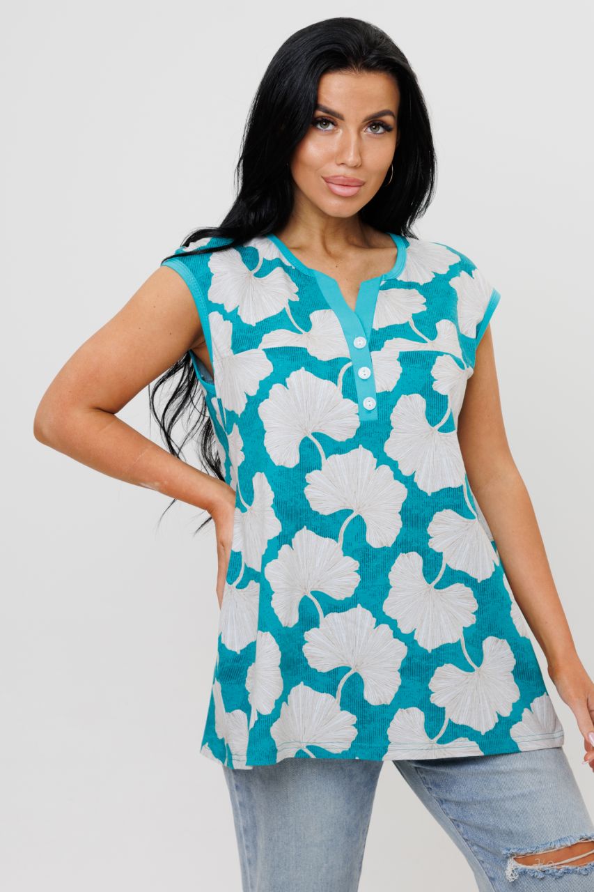 Футболка – универсальный предмет гардероба каждой современной женщины. Футболка женская со спущенным цельнокроеном рукавом имеет необычный вид и позволяет сделать привычный образ с джинсами или шортами более интересным. Футболка полуприлегающего силуэта сшита из трикотажного 100% хлопкового полотна. Круглый вырез с застежкой планкой на пуговицах придает женственность и элегантность. Футболку можно носить как повседневную одежду для дома, работы, прогулок, встреч с друзьями, пляжную тунику для отдыха на море или у бассейна.