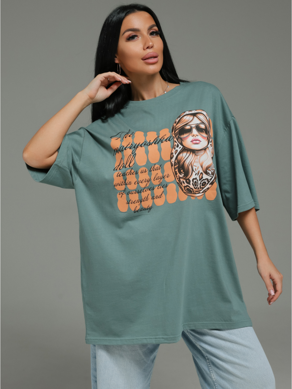 Женская футболка из кулирки пенье «Амина [зеленый матрешка]» арт 85154