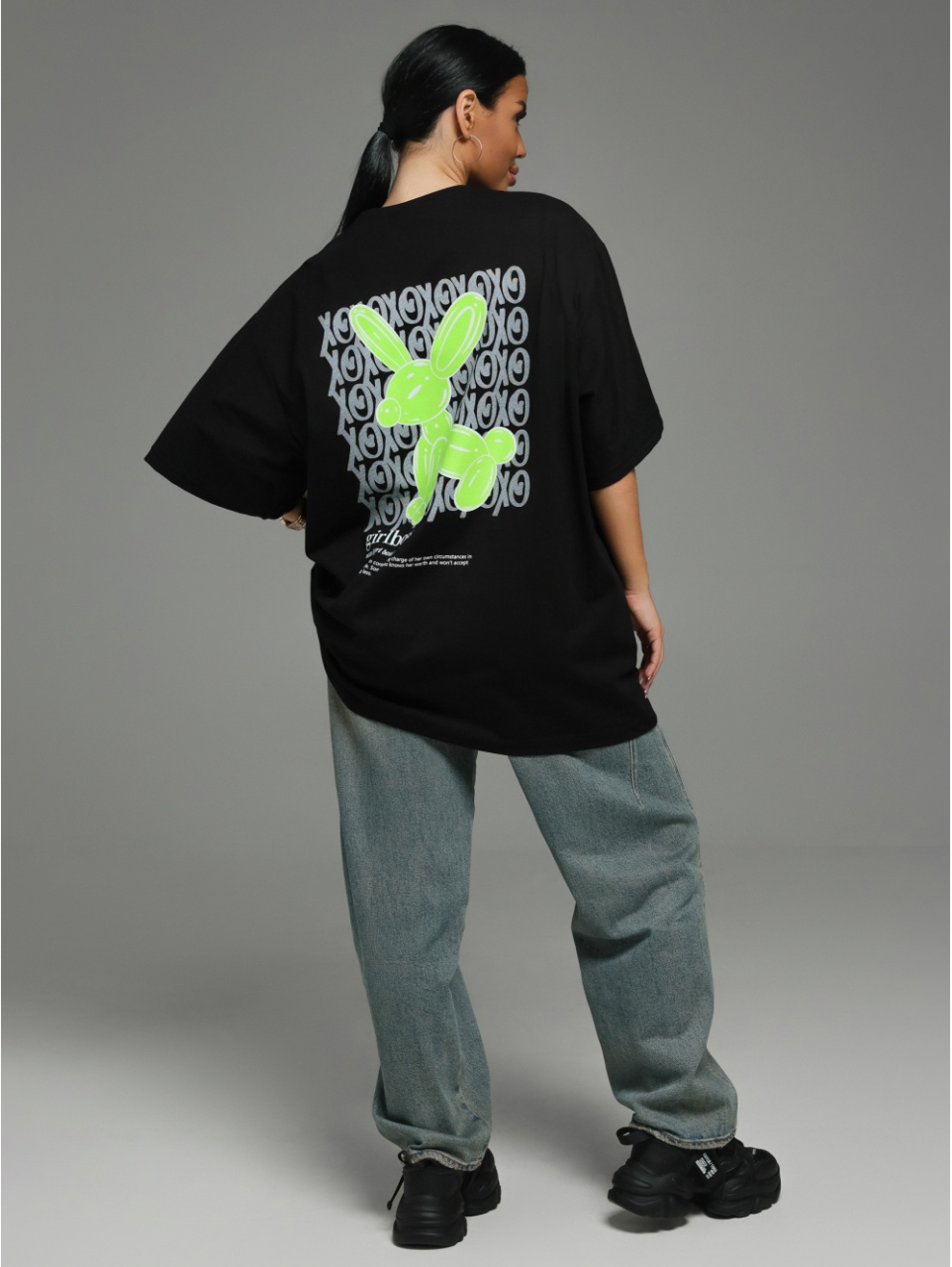 Женская футболка из кулирки «Бабл [черный заяц]» арт 83138