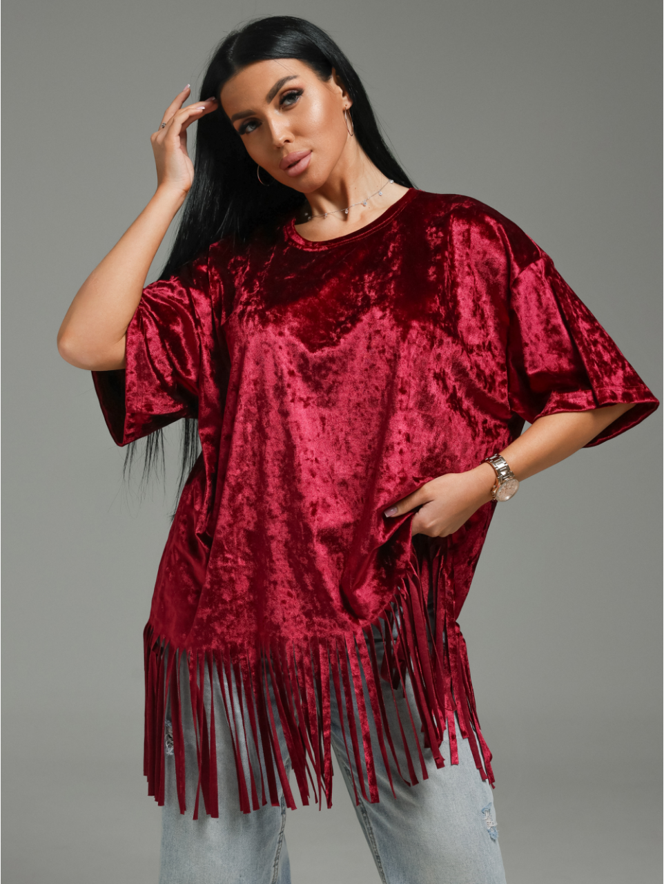 Женская футболка из бархата «Бьянка [бордо]» арт 84454