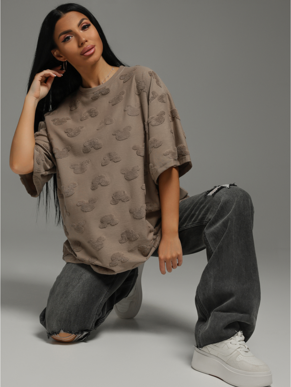 Женская футболка из махры жаккард «Ирбис [микки кофе]» арт 82572