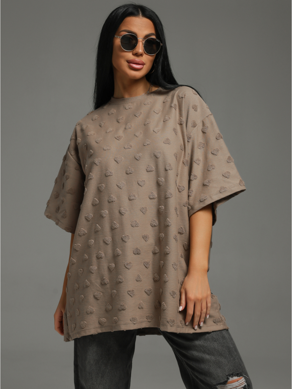 Женская футболка из махры жаккард «Ирбис [сердца кофе]» арт 82573