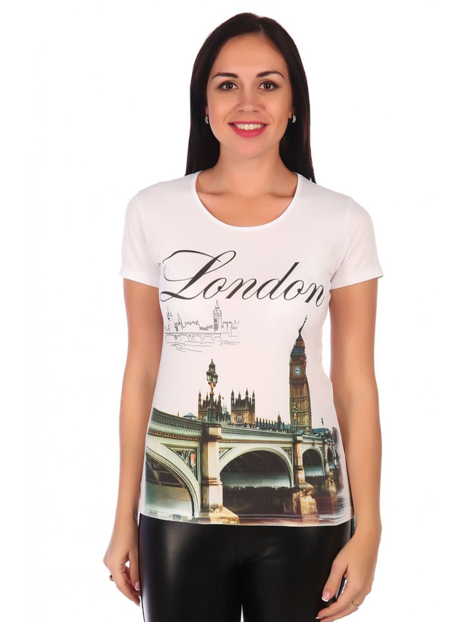 Футболка ЛОНДОН изготовлена из хлопкового материала. Футболка полуприлегающего силуэта. Вырез горловины круглый, рукав короткий. Полочка украшена принтом. Модель отлично сочетается с джинсами, шортами, легинсами, юбками.