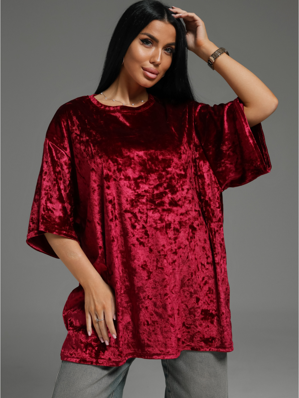 Женская футболка из бархата «Марлен [бордо]» арт 84092