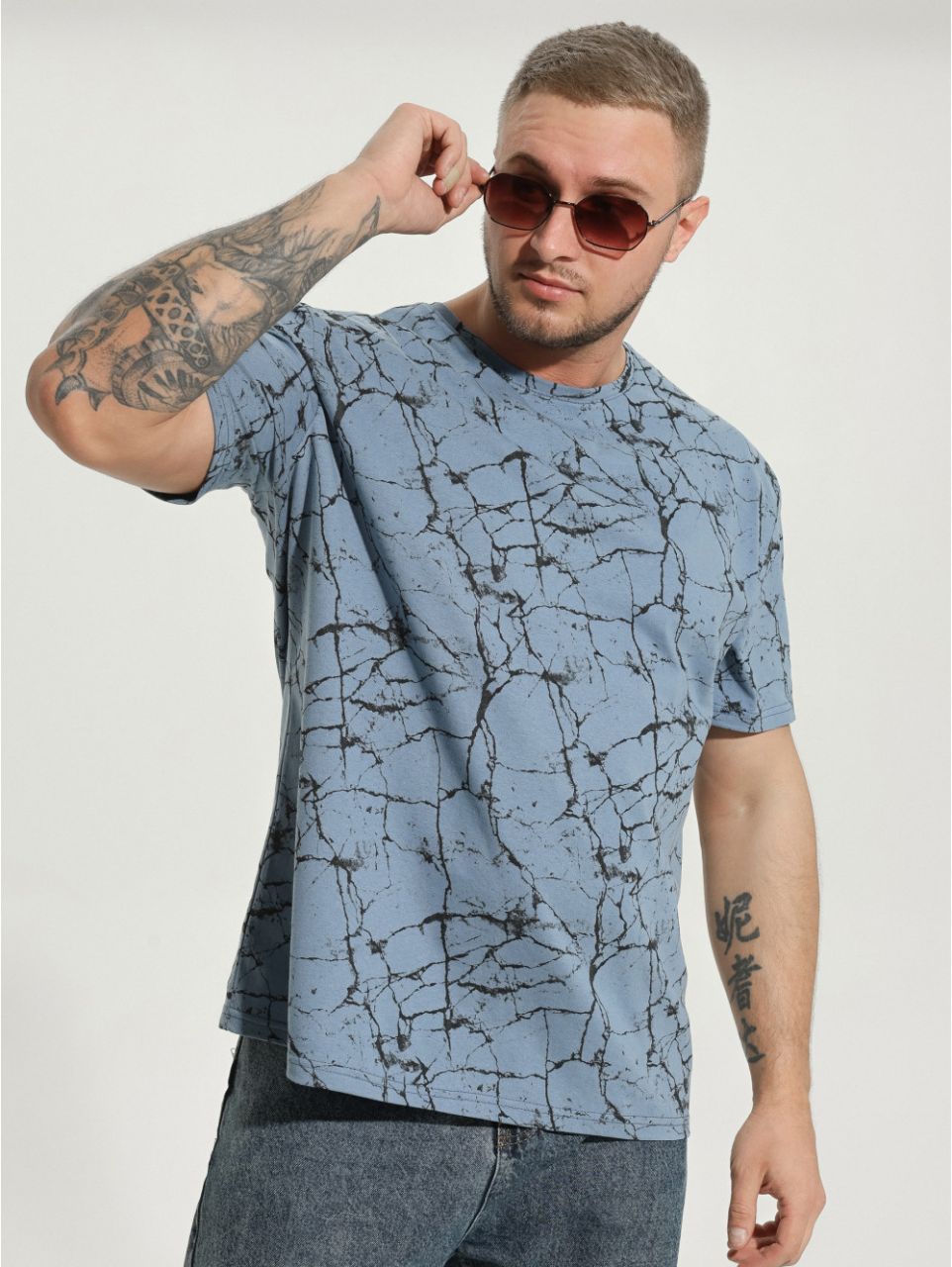 Мужская футболка из кулирки «Титан [индиго клетка]» арт 75990