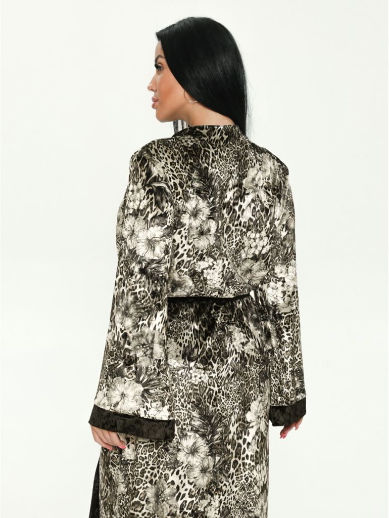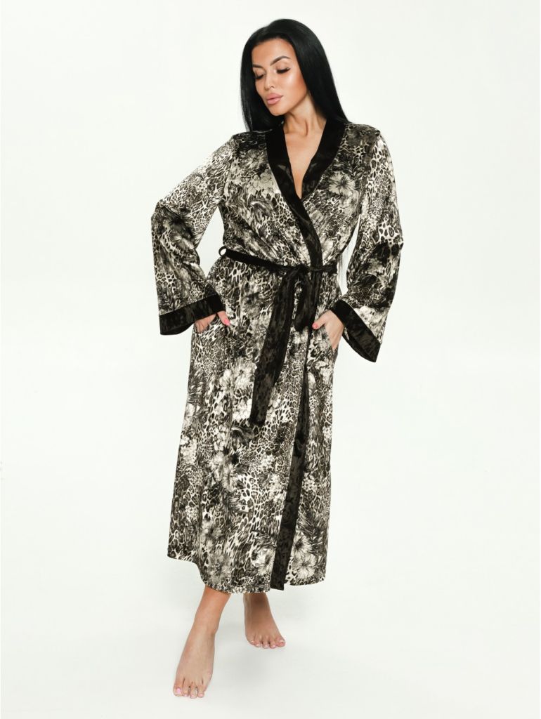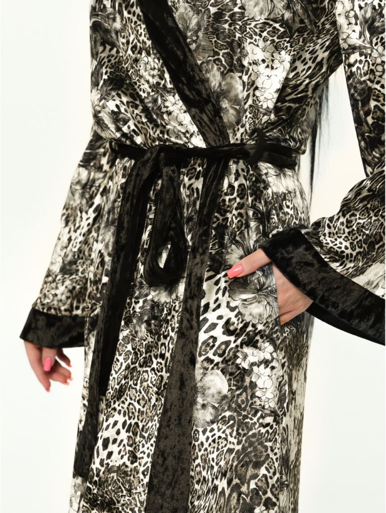 Женский халат (на запах с поясом) из бархата «Верона [цветы]» арт 68956