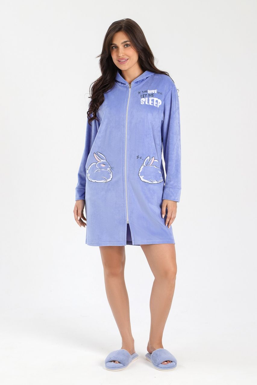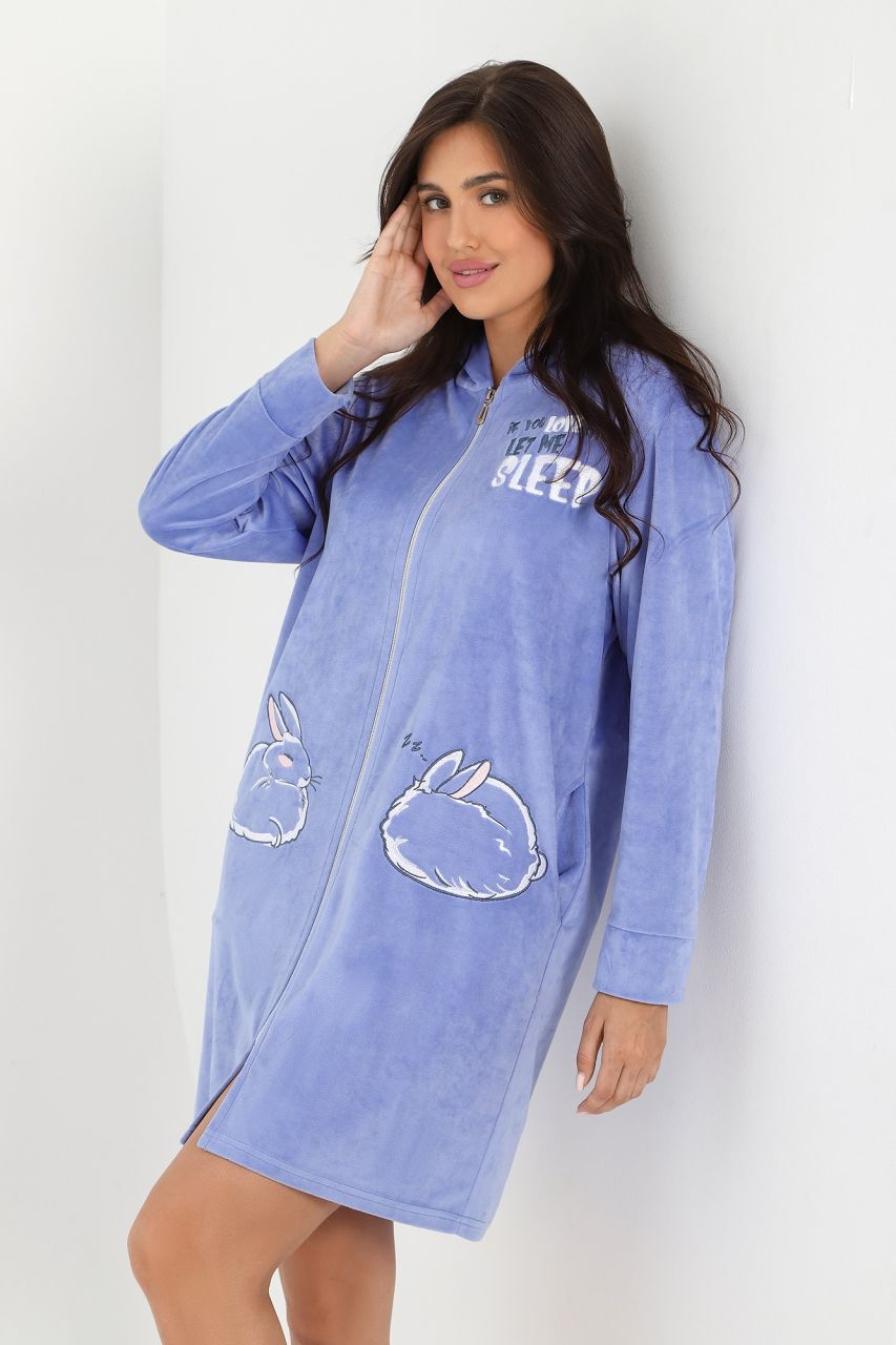 Женский халат (на молнии) из вельмонда «Монисто [голубой]» арт 77159
