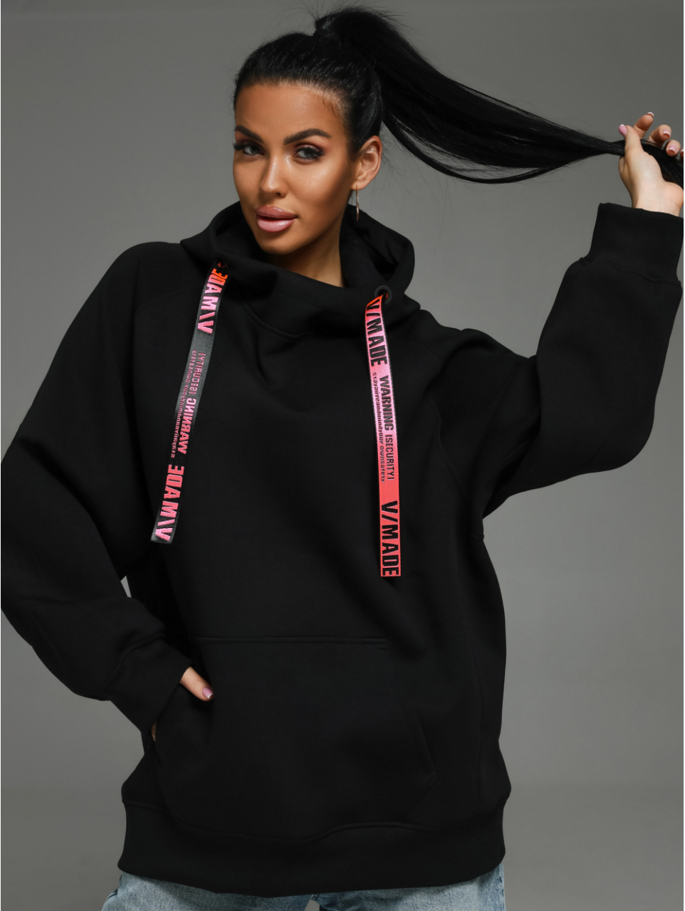 Худи – oversize кроя с капюшоном, с притачным поясом по низу, с длинным рукавом реглан на манжете.