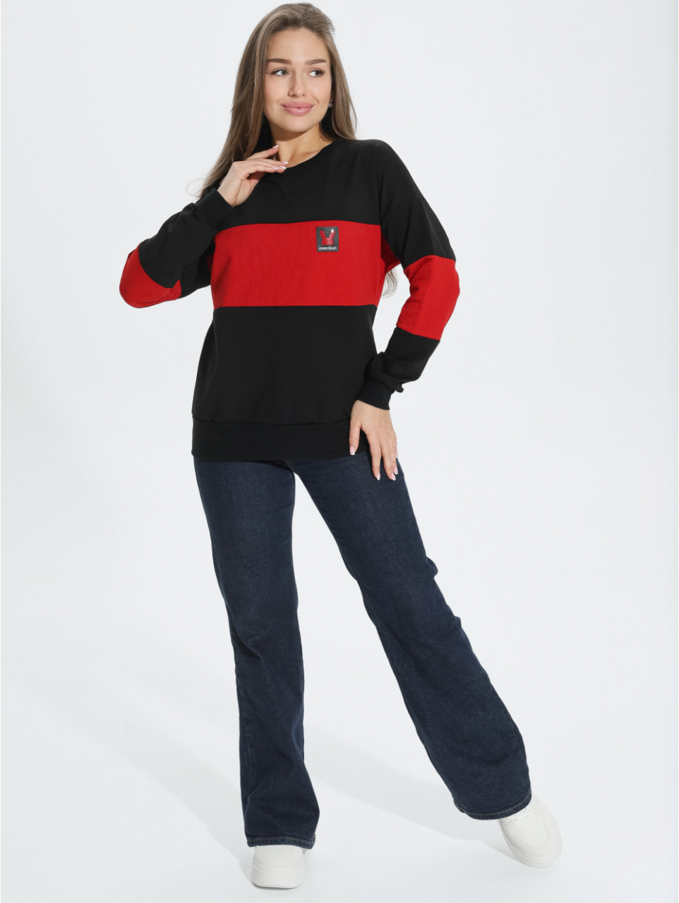 Дополнением к образу служит стильная нашивка спереди изделия.