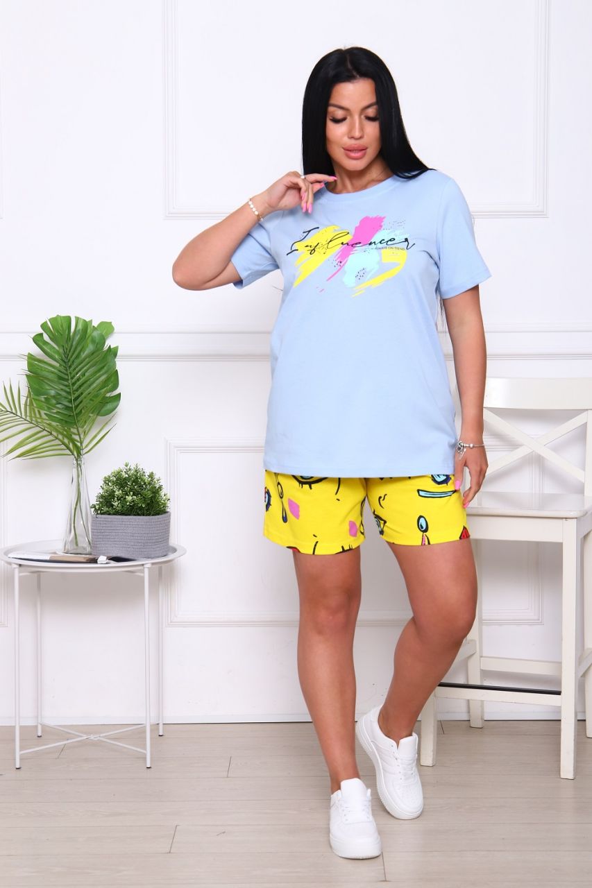 Женский костюм (футболка+шорты) из кулирки «1076» арт 85798
