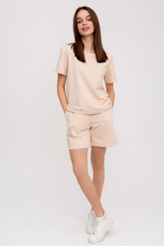 Стильный молодежный костюм из футера состоит из футболки и шорт