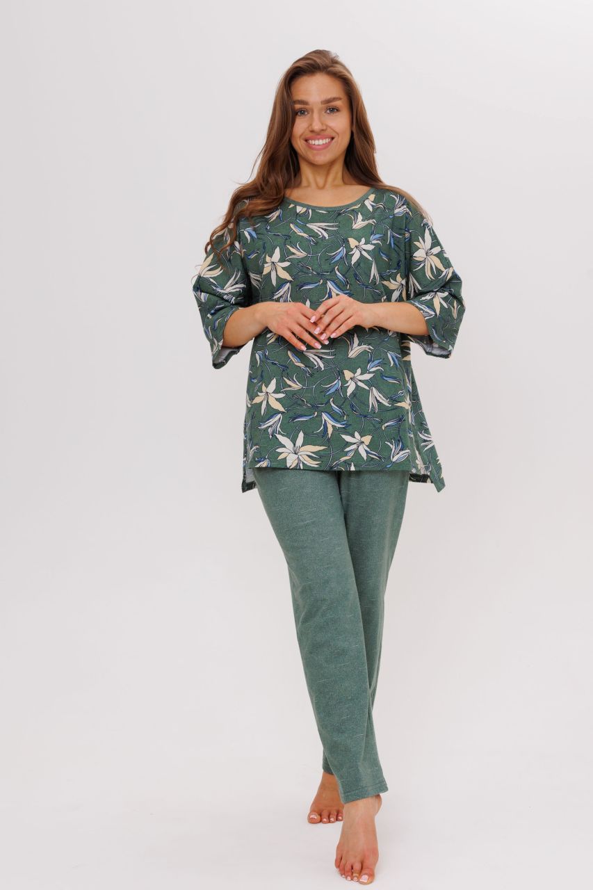 Женский домашний костюм свободного силуэта, выполненный из тканей-компаньонов.