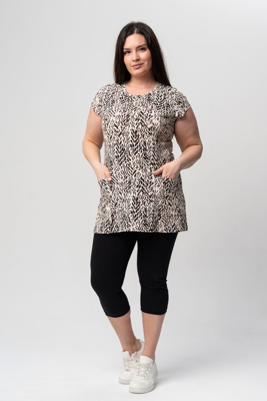 Костюм незаменим для дачи, дома и прогулок. Очень удобные бриджи из высококачественной ткани. Наличие 5% лайкры позволяет бриджам не растягиваться на коленях во время носки, многократно увеличивает долговечность изделия. А содержание 95% хлопка делает бриджи очень комфортными и приятными к телу. Туника ниже линии бёдер, с двумя карманами. Благодаря наличию рельефов на полочке и спинке туника имеет хорошую посадку на фигуре. Лёгкая приталеность стройнит.