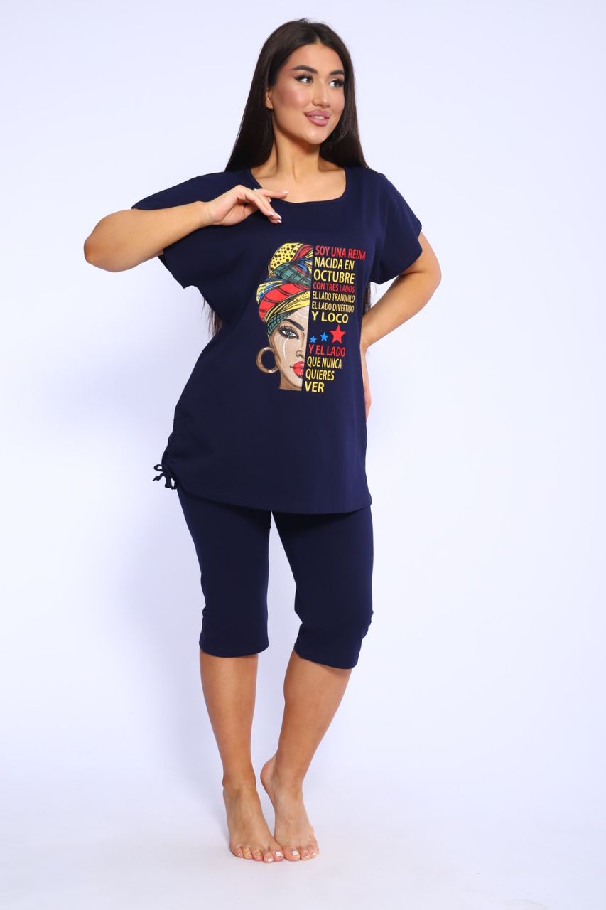 Представляем вашему вниманию женский домашний спортивный костюм, который идеально подходит для комфортного времяпрепровождения дома и на даче. Этот комплект включает в себя удобную футболку и стильные бриджи, которые глубоко заботятся о вашем комфорте. Изготовленный из мягкого и дышащего материала, он отлично подходит для расслабления и активного отдыха. Футболка обладает лаконичным дизайном, что добавляет универсальности, а бриджи прекрасно сочетаются с ней, создавая непринужденный ансамбль. Такой набор станет идеальным выбором в качестве домашней пижамы, позволяя вам чувствовать себя уютно и привлекательно.