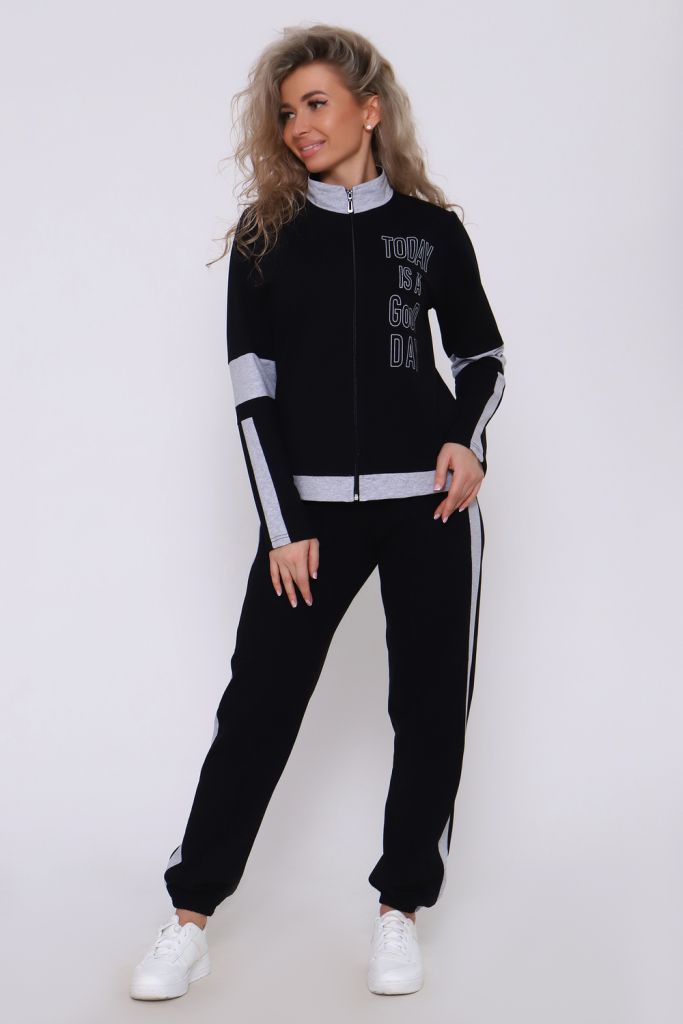 Молодежный костюм, который идеально подойдет на любой случай. Костюм состоит из кофты и брюк. Кофта на молнии, воротник стойка из отделочной ткани, пояс также из отделочной ткани. Рукав в данной модели особенно красив за счет вставок из отделочной ткани. На полочке неброская печать. Брюки с карманами и лампасами, низ на резинке, что очень удобно при носке. Пояс брюк обработан на поясной машине. Костюм отлично подойдет как для повседневной носки, так и для спорта и прогулки. В нашем модном костюме вы будете самой красивой!