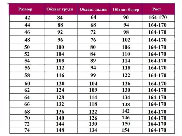 - Размерная сетка
