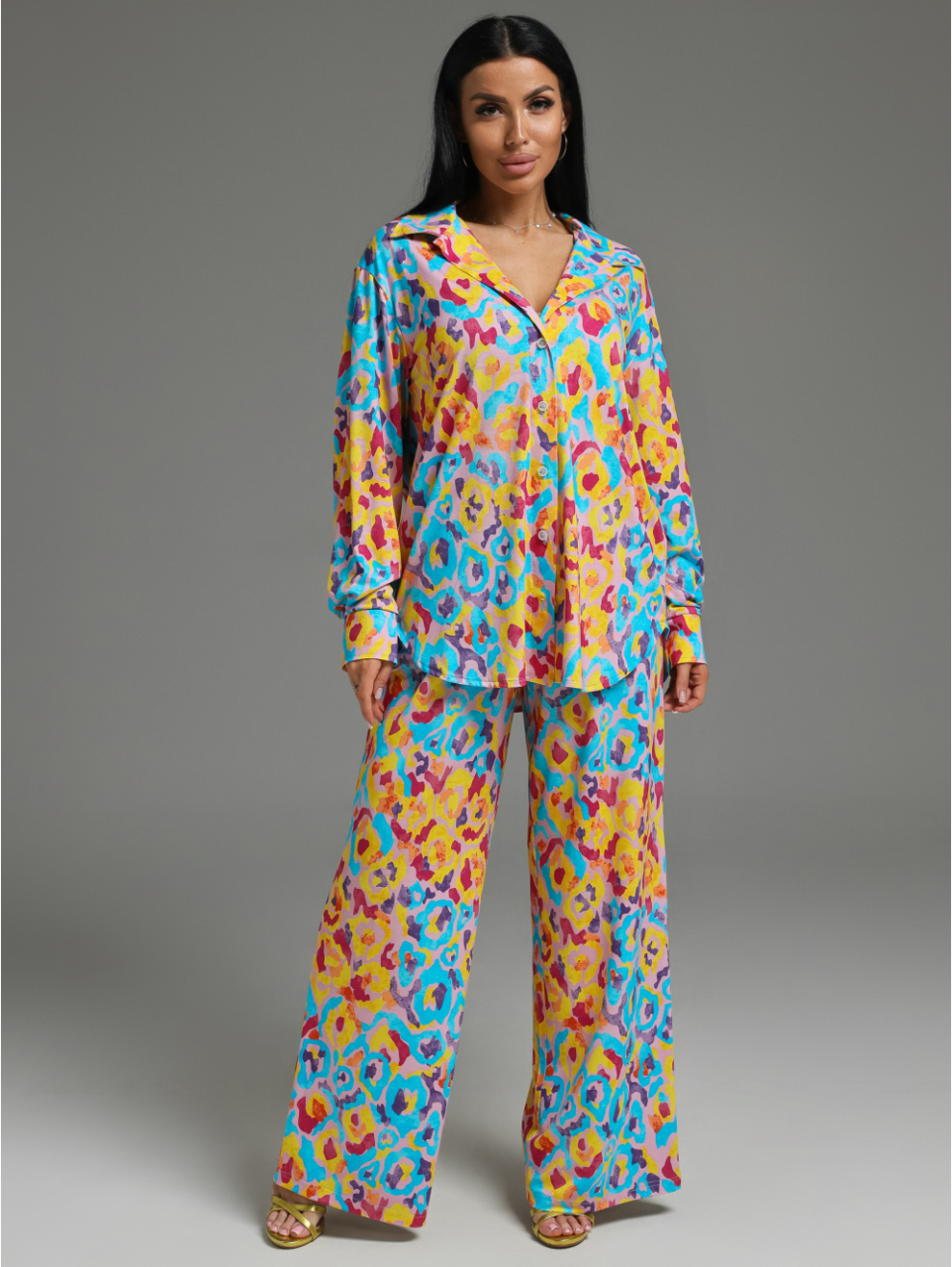 Костюм женский состоит из рубашки и брюк.