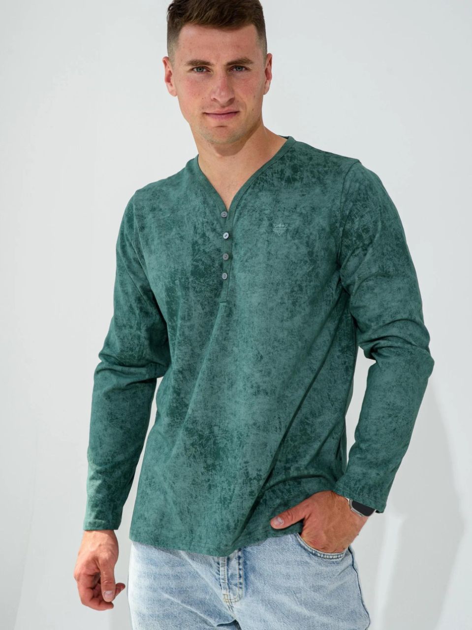Мужской лонгслив из кулирки «Путешествие 2284-К (зеленый)» арт 81853