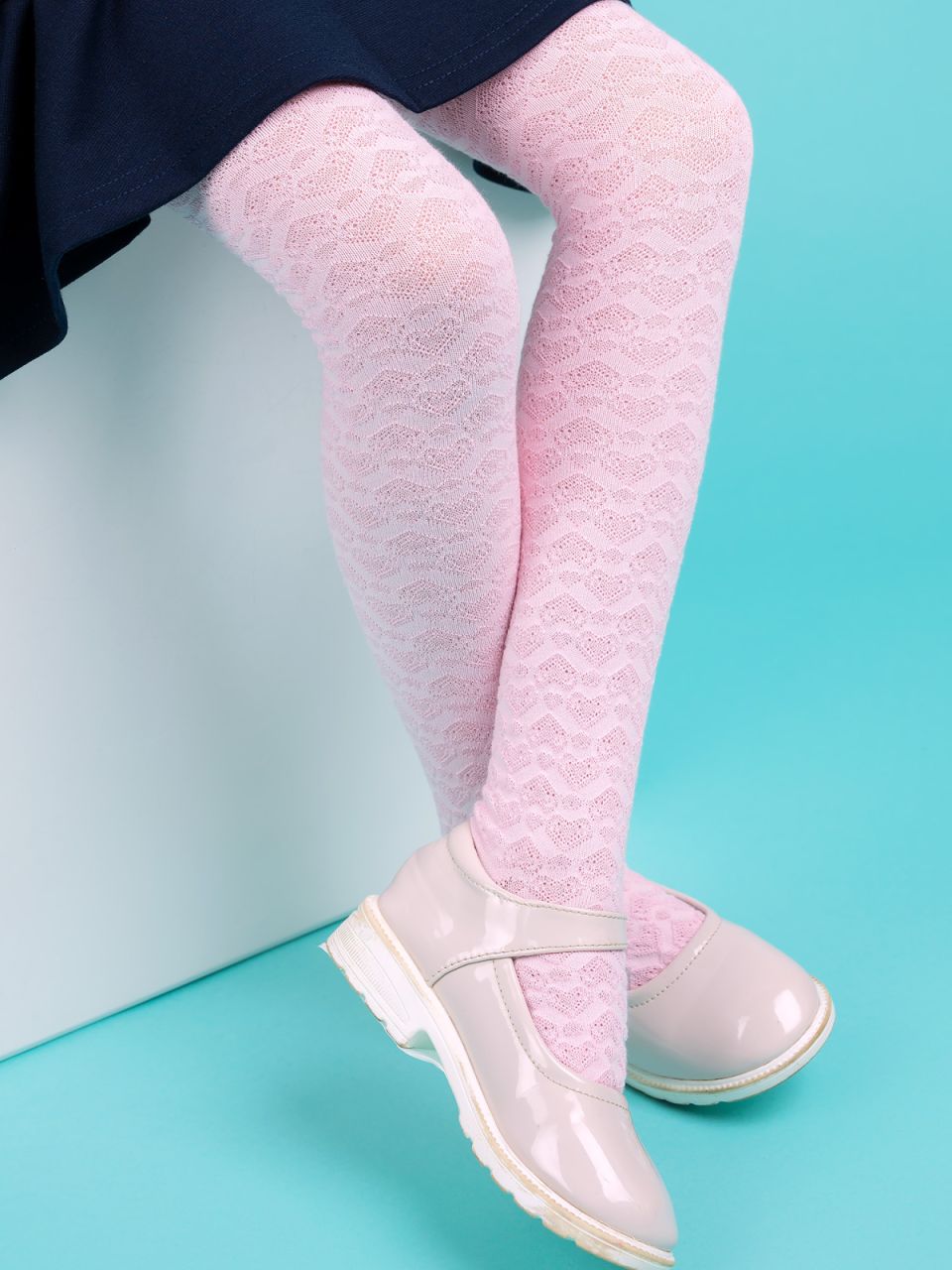 Детские колготки для девочек. Очаровательная модель, связанная из натурального гребенного хлопка, очень комфортная, обладает воздухопроницаемостью и подходит для повседневной носки. Ажурные колготки - незаменимый аксессуар в гардеробе девочки, отлично сочетается со школьной формой, разбавляя официальный стиль.