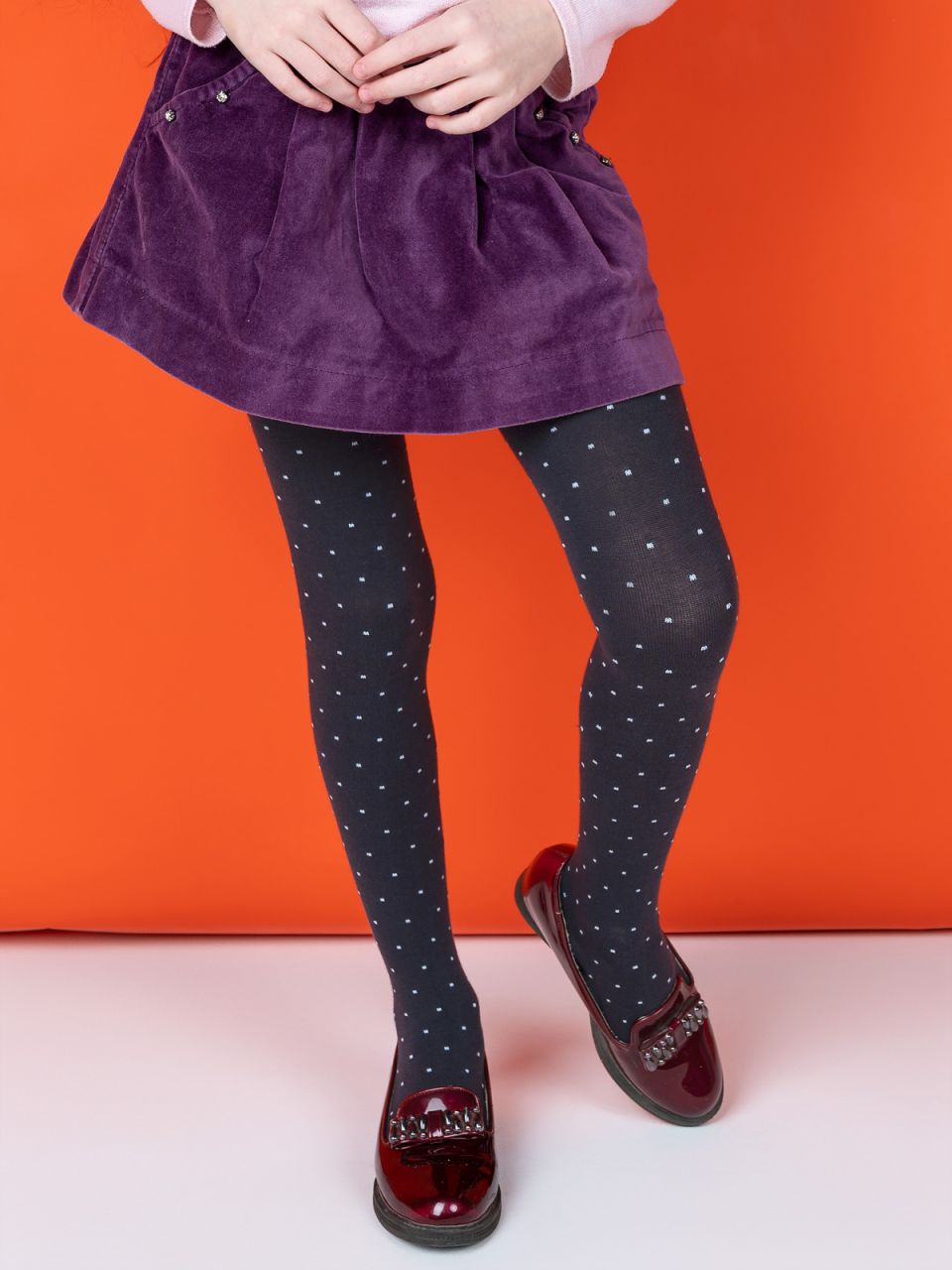Детские колготки для девочек. Модель, связанная из натурального гребенного хлопка, мягкая, комфортная, воздухопроницаемая. Трендовый рисунок в горошек не оставит равнодушной ни одну маленькую модницу. Колготки можно сочетать как с классической школьной формой, так и с более неформальными образами.