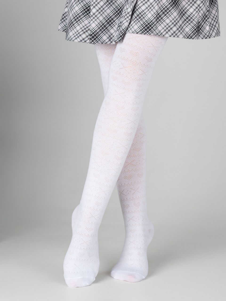 Ажурные колготки для девочек. Изделие, связанное из натурального гребенного хлопка, комфортное, мягкое и воздухопроницаемое. Благодаря рисунку и выбору цветов, модель сочетается с разными образами: от классической формы до праздничных нарядов. Ажурные колготки - отличный вариант для школы и садика.