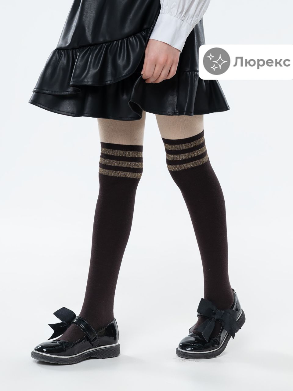Колготки с люрексом для девочки. Изделие связано из натурального гребенного хлопка с добавлением люрекса, комфортное и тактильно приятное. Современный дизайн модели подчеркнет индивидуальность каждой обладательницы. Такие колготки станут отличным дополнением к праздничному образу.