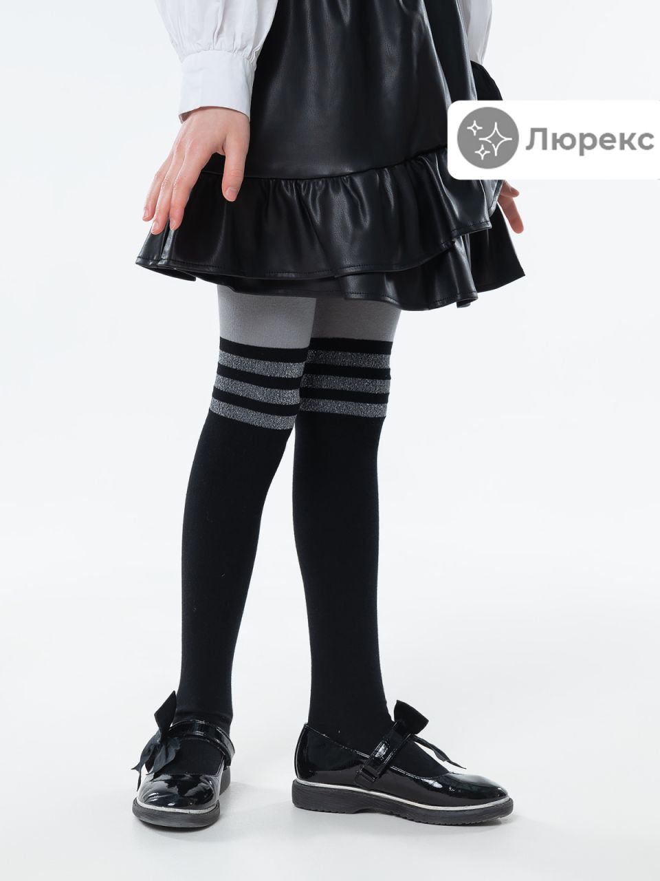 Колготки с люрексом для девочки. Изделие связано из натурального гребенного хлопка с добавлением люрекса, комфортное и тактильно приятное. Современный дизайн модели подчеркнет индивидуальность каждой обладательницы. Такие колготки станут отличным дополнением к праздничному образу.