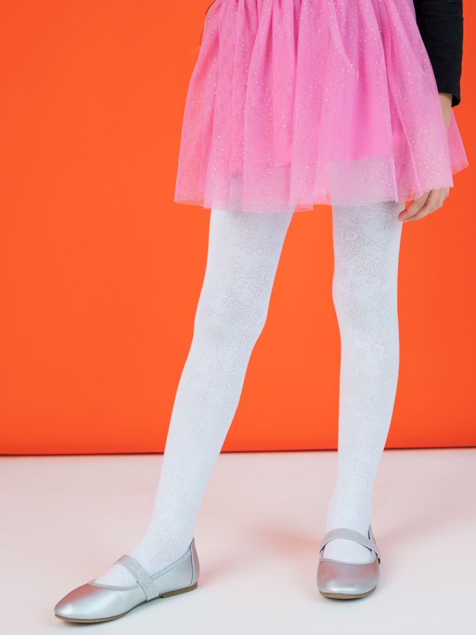 Детские демисезонные колготки. Мягкая модель связана из натурального гребенного хлопка, благодаря этому, в них будет комфортно в течение всего дня. Ажурные колготки станут акцентом в образе, подчеркнут стиль и индивидуальность маленькой модницы.