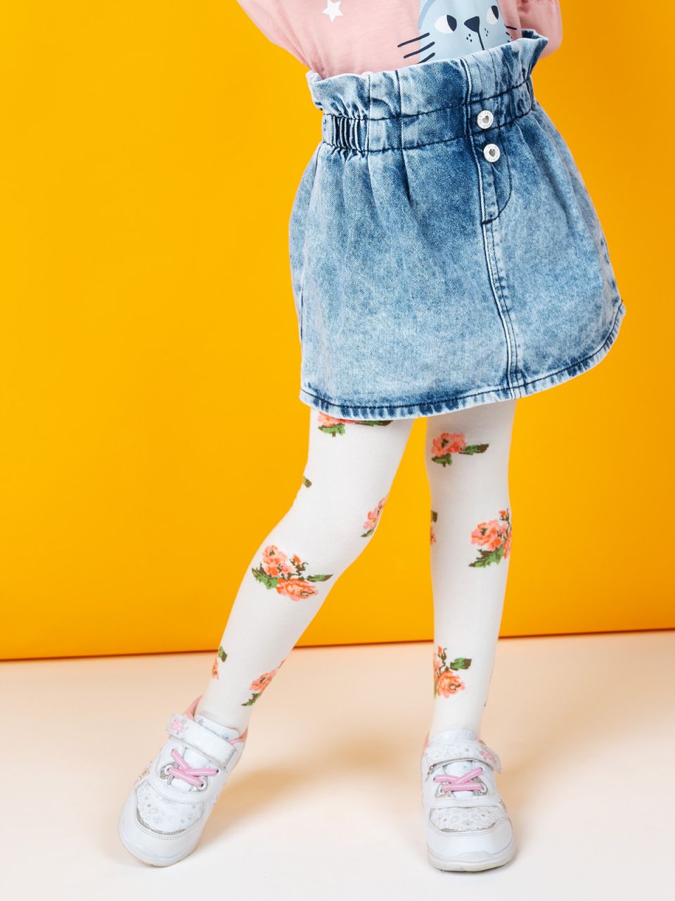 Детские демисезонные колготки для девочек. Очаровательная модель, связанная из натурального гребенного хлопка, очень мягкая, комфортная и тактильно приятная. Милые рисунки цветов привлекут внимание девочки.