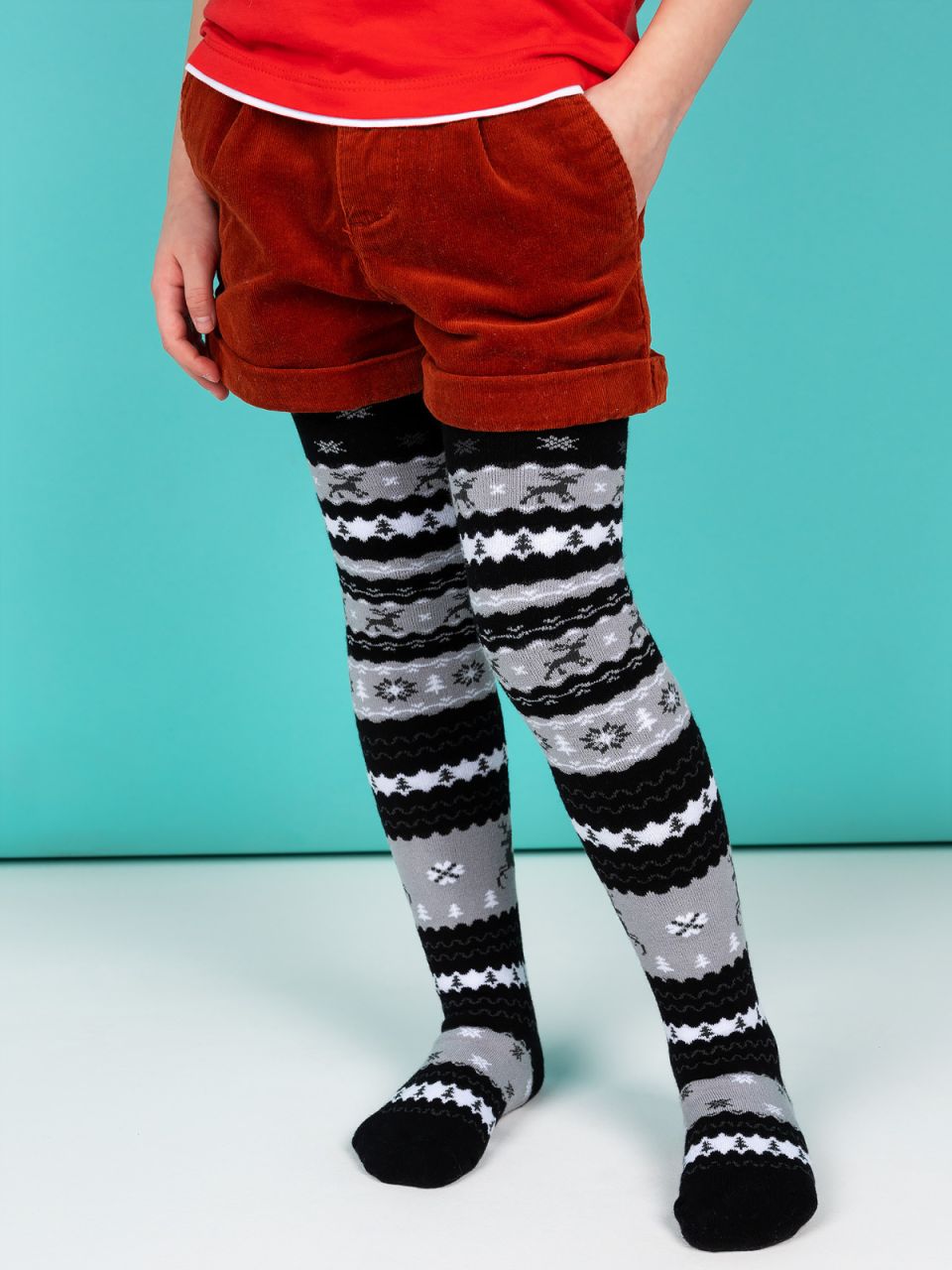 Нарядные детские колготки с новогодним узором. Праздничную атмосферу как никто другой создают скандинавские мотивы - графические ёлочки, снежинки и олени. Каждое цветовое решение рождает уникальный образ. Естественная терморегуляция и комфорт при носке обеспечены благодаря преобладанию в составе хлопка. Добавление синтетических нитей укрепляет изделие, помогает надолго сохранить внешний вид.