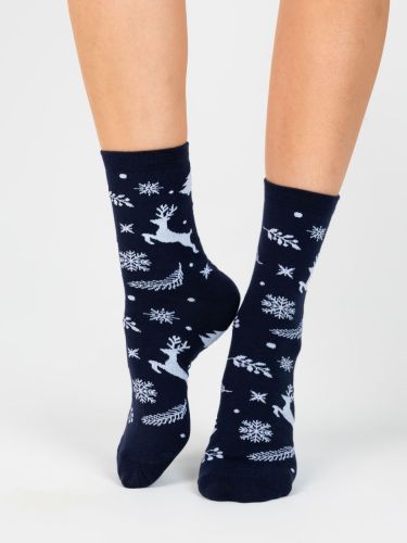 Новогодние женские носки. Мягкая основа – натуральный гребенной хлопок, который обеспечит максимальный комфорт и уют на протяжении дня. Эластичная резинка надёжно фиксирует изделие, не сдавливая при этом ногу. Яркие носки с рисунком оленей сделают ваше настроение особенно праздничным и станут отличным подарком для близких, который подчеркнет вашу заботу и любовь.