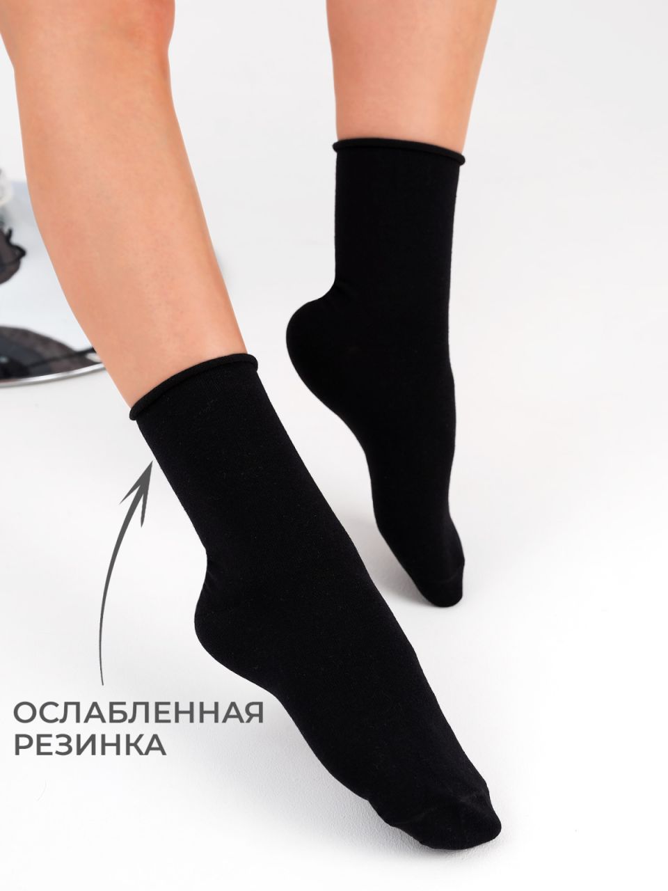 Однотонные женские носки с ослабленной резинкой. Модель высокого качества из натурального гребенного хлопка для повседневной носки и тренировок, обладает воздухопроницаемостью и эластичностью. Данные носки не перетягивают ногу, не нарушают кровообращение, отличный вариант при отеках и усталости ног, подходят для беременных женщин. Выполнены в трёх цветах: белый, серый, черный. Носки станут универсальным и незаменимым атрибутом вашего гардероба.