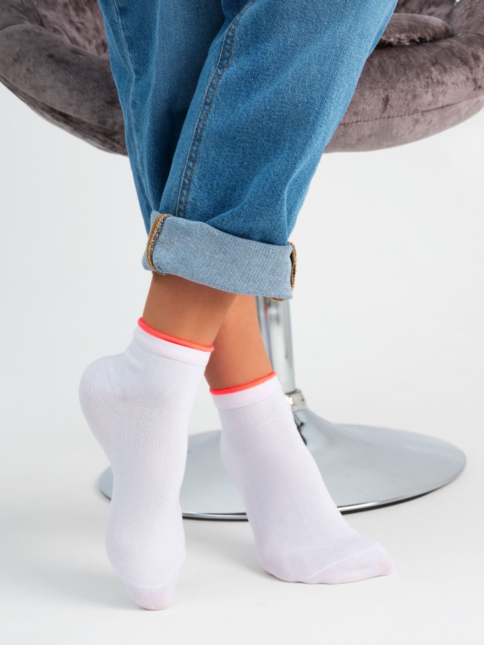 Женские носки с ярким бортом. Связаны из натурального гребенного хлопка с добавлением эластана, который гарантирует эластичность изделия и облегаемую форму. Благодаря натуральным материалам ногам будет комфортно и уютно, а яркий борт поднимет настроение и оживит ваш образ.