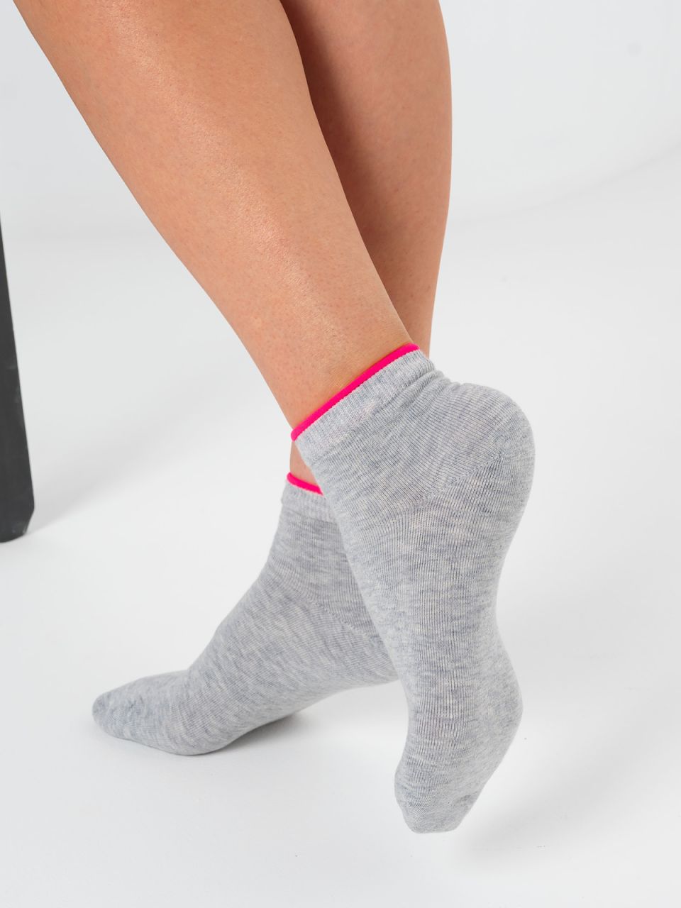 Женские носки с ярким бортом. Связаны из натурального гребенного хлопка с добавлением эластана, который гарантирует эластичность изделия и облегаемую форму. Благодаря натуральным материалам ногам будет комфортно и уютно, а яркий борт поднимет настроение и оживит ваш образ.