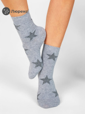 Женские носки из натурального хлопка – базовая вещь в любом гардеробе. Модель прекрасно сочетается с разными стилями в одежде и подходит для повседневной носки. Узоры в форме звезды люрекса добавляют изделию оригинальности и блеска. В таких носочках вы точно не останетесь незамеченными.