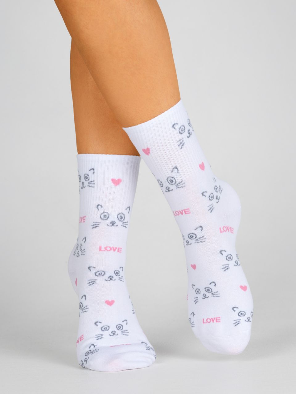 Демисезонные носки с рисунком кошки - это стильный аксессуар в гардеробе. Спортивная резинка плотно облегает ногу, не причиняя дискомфорт. Высокое качество изделия подарит вашим ножкам защиту и комфорт в течение всего дня, а очаровательный дизайн никого не оставит равнодушным.