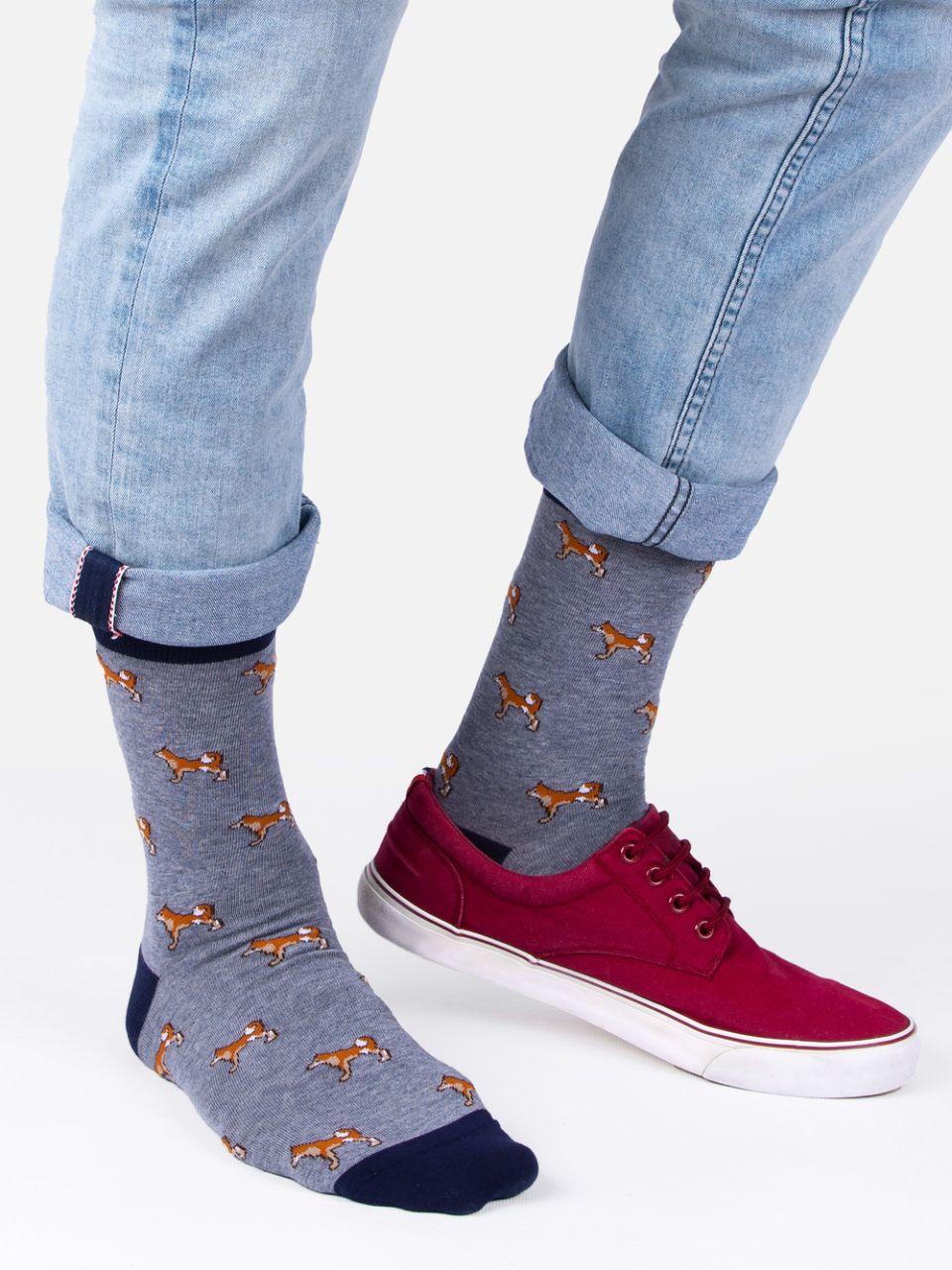 Обаятельная модель мужских носков с рисунком собак. Модное решение для вашего гардероба и стильных образов. Натуральный гребенной хлопок в составе позволяет коже «дышать», а эластичная резинка отлично фиксирует посадку изделия. Выбирайте комфорт и качество с носками коллекции Casual.