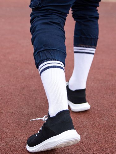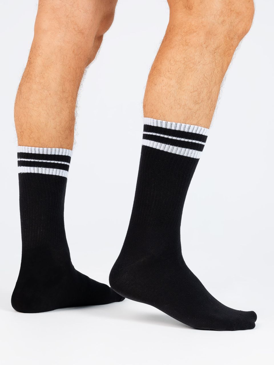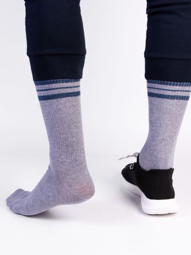 Стильные спортивные носки для мужчин. Удобная посадка достигается сочетанием разной плотности вязки. Упругие мысок, следок и пятка, а также уплотнённый борт надёжно фиксируют носок на ноге.