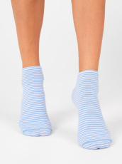 Женские полосатые носочки. Мягкая хлопковая основа создает ощущения лёгкости и комфорта, а добавление синтетических нитей усиливает устойчивость от износа. Яркий полосатый рисунок модели непременно сделает носки стильным атрибутом вашего гардероба.