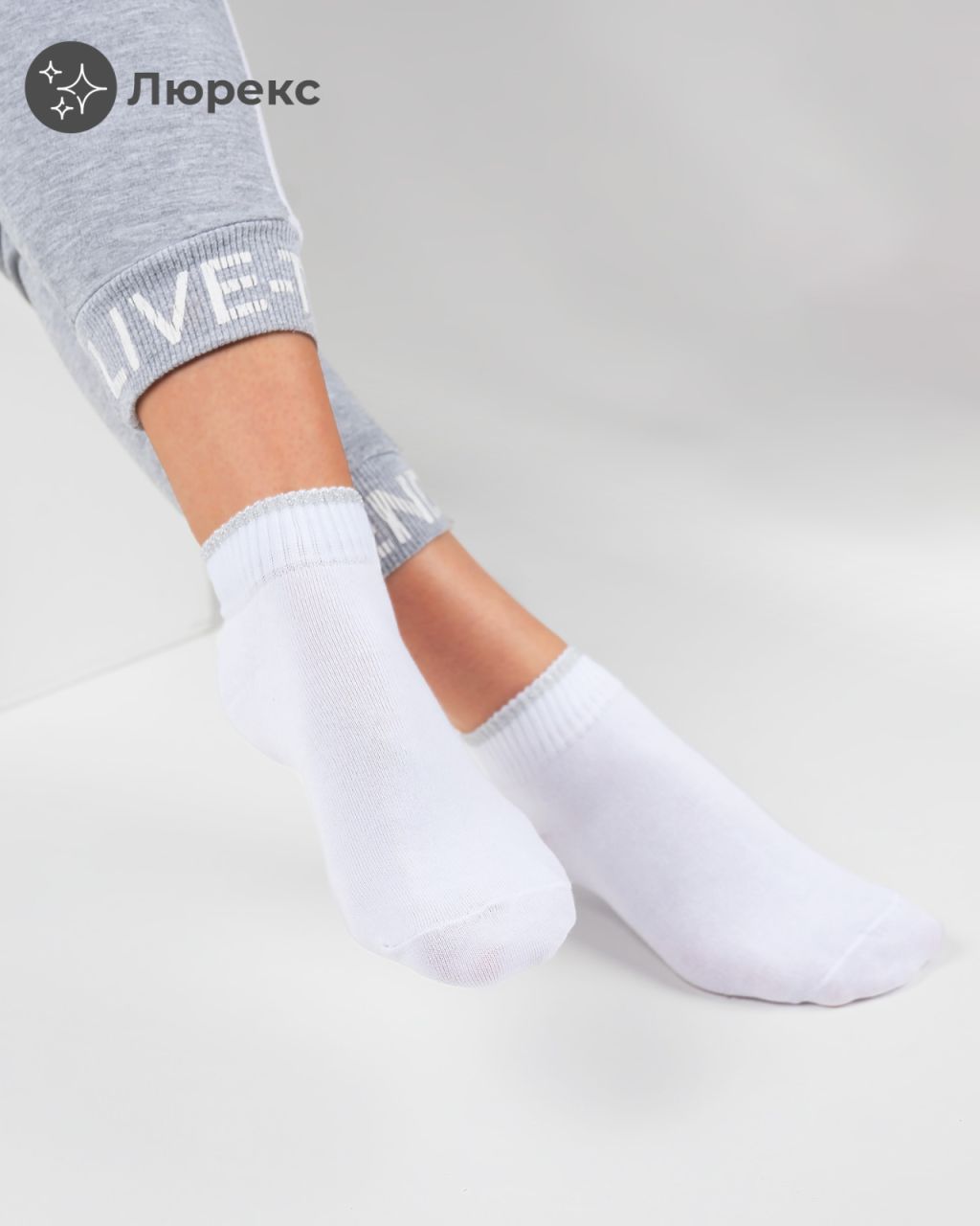 Женские укороченные носки с люрексом уже который год являются трендом сезона весна-лето. Борт носка изготовлен с добавлением нити люрекс, который добавит блеска образу. Современный дизайн изделия подчеркнет ваш стиль. Модель подходит для повседневной носки, в ней комфортно в течение всего дня.