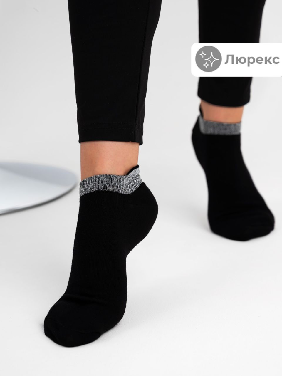 Тренд сезона весна-лето – укороченные женские носки с люрексом. Люрекс красиво подчеркивает борт носка. Такой аксессуар добавит вашему образу блеска, он прекрасно сочетается с разными стилями в одежде. Модель подходит для повседневной носки, в ней комфортно в течение всего дня.