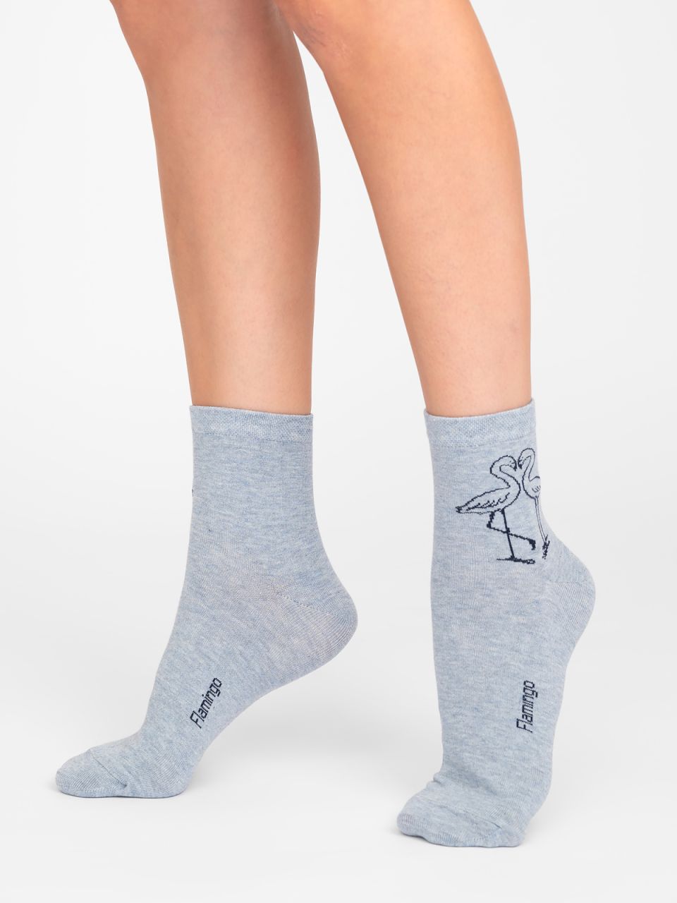 Милые женские носки с рисунком фламинго. За счет мягкой хлопковой основы материал обеспечивает воздухопроницаемость и отводит влагу, что делает модель оптимальным вариантом для демисезона. Трогательный рисунок в виде двух влюблённых фламинго, несомненно, никого не оставят равнодушным и притянут восхищенные взгляды.