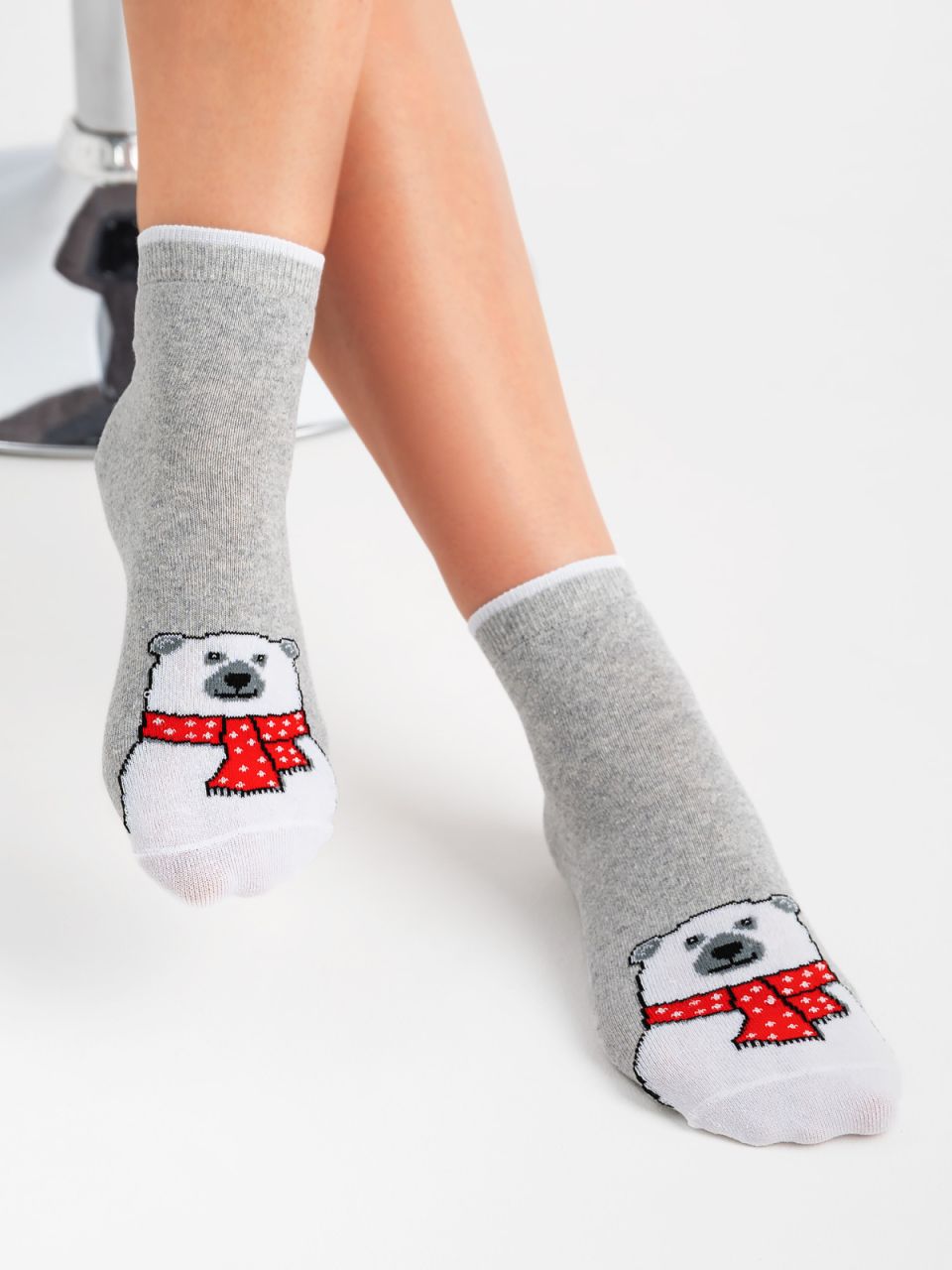 Обворожительные женские носки с медведями, изображенными на мыске изделия. Натуральному гребенному хлопку в составе свойственны гигиеничность, повышенный комфорт и долговечность. Очаровательный белый медведь с ярким красным шарфом на мыске, без сомнений, не оставит равнодушной ни одну обладательницу. Симпатичный дизайн поднимет настроение и добавит в образ яркие акценты.