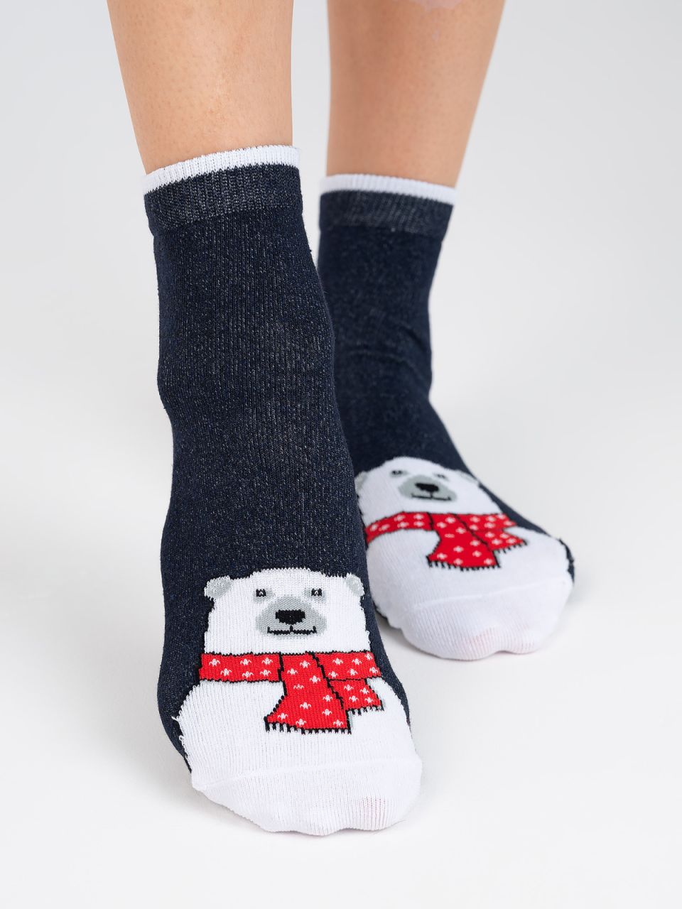 Обворожительные женские носки с медведями, изображенными на мыске изделия. Натуральному гребенному хлопку в составе свойственны гигиеничность, повышенный комфорт и долговечность. Очаровательный белый медведь с ярким красным шарфом на мыске, без сомнений, не оставит равнодушной ни одну обладательницу. Симпатичный дизайн поднимет настроение и добавит в образ яркие акценты.