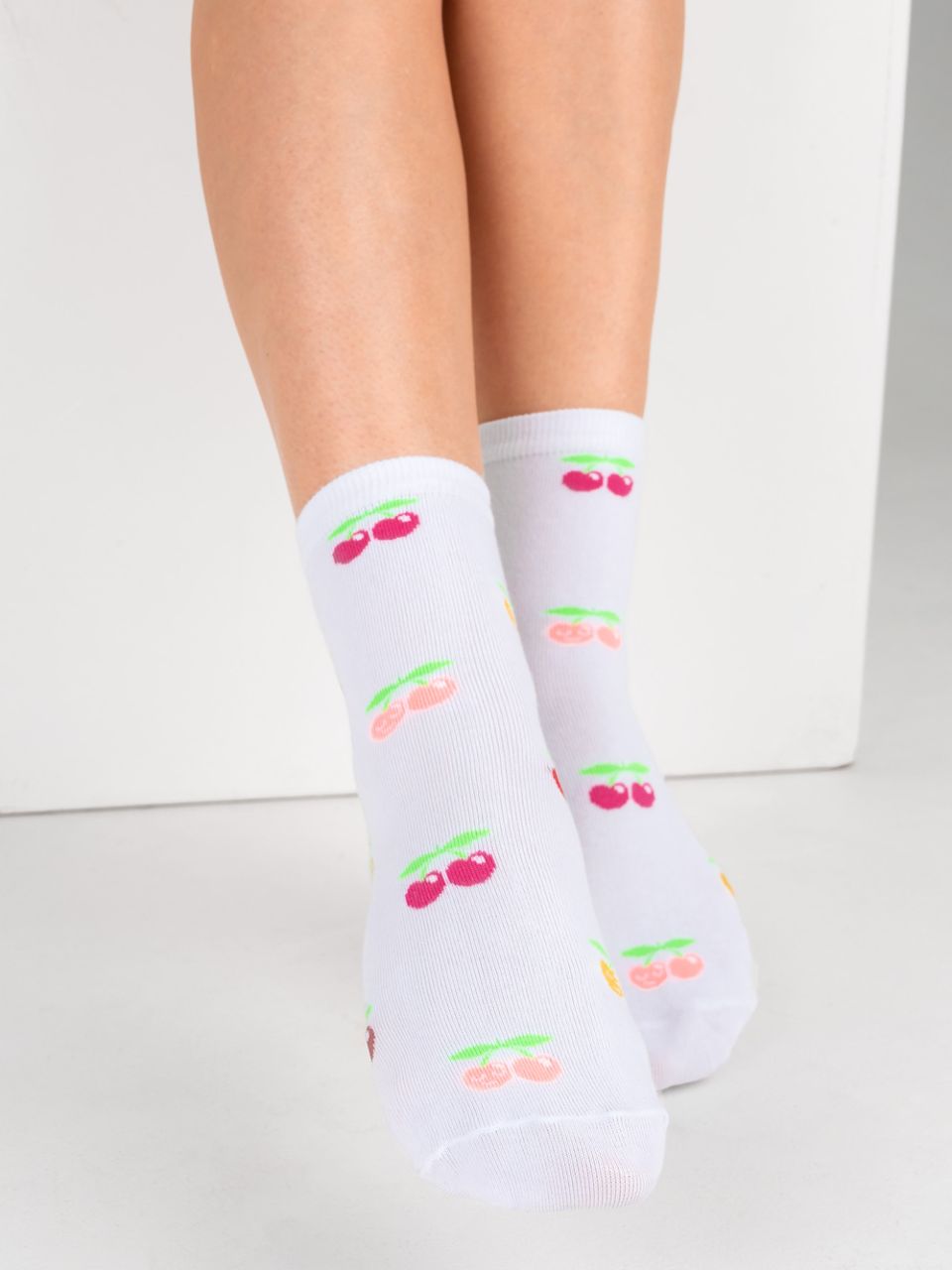 Женские носочки с вишней, изображенной по всей длине изделия. Мягкая основа из натурального гребенного хлопка дополнена синтетическими нитями, обеспечивающими упругость и устойчивость изделия к истиранию. Забавный дизайн с рисунком красочной вишни, без сомнения, будет притягивать восхищенные взгляды. Такие носки могут стать как ярким аксессуаром в вашем гардеробе, так и особенным подарком для близких и родных.
