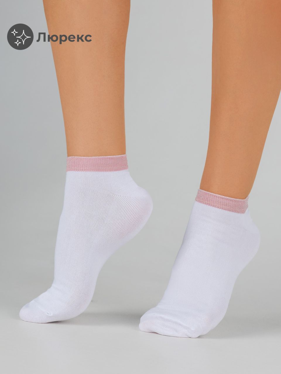 Женские укороченные носки из натурального хлопка – базовая вещь в каждом гардеробе. Нить люрекс красиво подчеркивает борт носка, придаёт изделию оригинальности и блеска. Модель подходит для повседневной носки, в ней комфортно в течение всего дня.